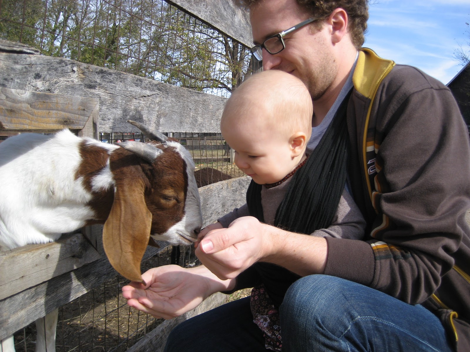 Feeding the goats with Daddy at Roca "Scary" Farm. |